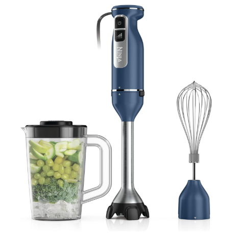 Ninja Immersion Blender and Whisk, Hand Stick Blender, 4 Speeds, with SplatterShield and PanProtect, 4-Cup Blending Vessel, Dishwasher Safe, 5-ft Cord, Ergonomic, Deep Navy, CI201ND
