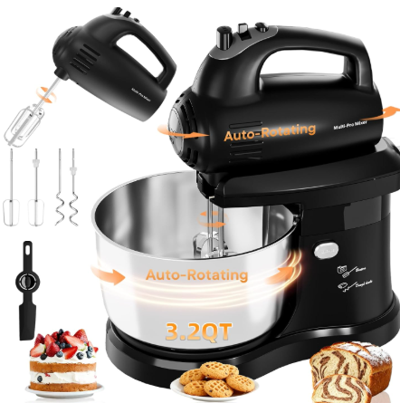 This 3.2‑QT 5‑speed stand mixer delivers dependable mixing power in a compact design, featuring an auto‑rotating bowl, tilt‑head access, and both beaters and dough hooks for versatile baking. It’s a smart, space‑saving choice for everyday bakers who want reliable performance without the bulk or price of a full‑size mixer.