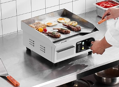 The VEVOR 14‑inch Commercial Electric Griddle stands out because it delivers restaurant‑level performance in a compact, affordable countertop design. With a powerful 1700W heating system and a wide 122°F–572°F temperature range, it handles everything from delicate eggs to high‑heat searing. The stainless‑steel build gives it durability for daily use, while the flat top surface heats evenly for consistent results. It’s popular with both home cooks and small food businesses because it’s easy to clean, includes shovels and brushes, and offers the kind of cooking versatility normally found in much larger commercial units.