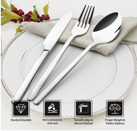 KINGSTONE Silverware Set, 20 Piece Flatware Cutlery Set for 4, 18/10 Stainless Steel Silverware Mirror Polished Dishwasher Safe for Home, Restaurant, Wedding, Party(Silver, 20 pieces for 4)