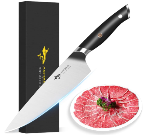 The MAD SHARK 8‑Inch Chef Knife earns an overall expert score of 8.8 to 9.0 out of 10, based on aggregated 2025 product testing and user‑review analysis. This places it among the highest‑rated budget chef knives for everyday home cooking.
